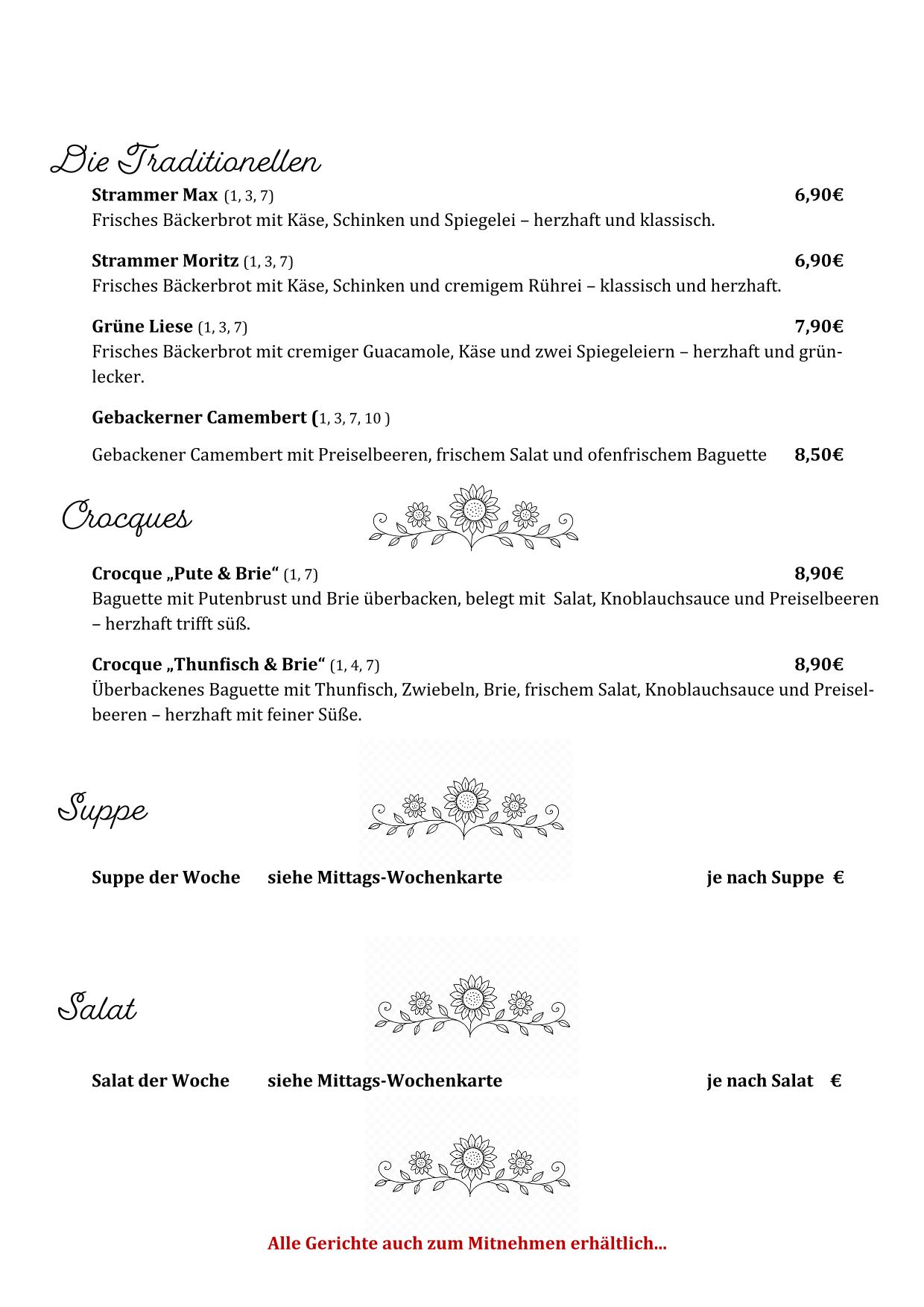 Unsere kleinen Gerichte bereiten wir frisch und mit viel Liebe zu – perfekt für eine kurze Auszeit bei uns oder zum Mitnehmen.