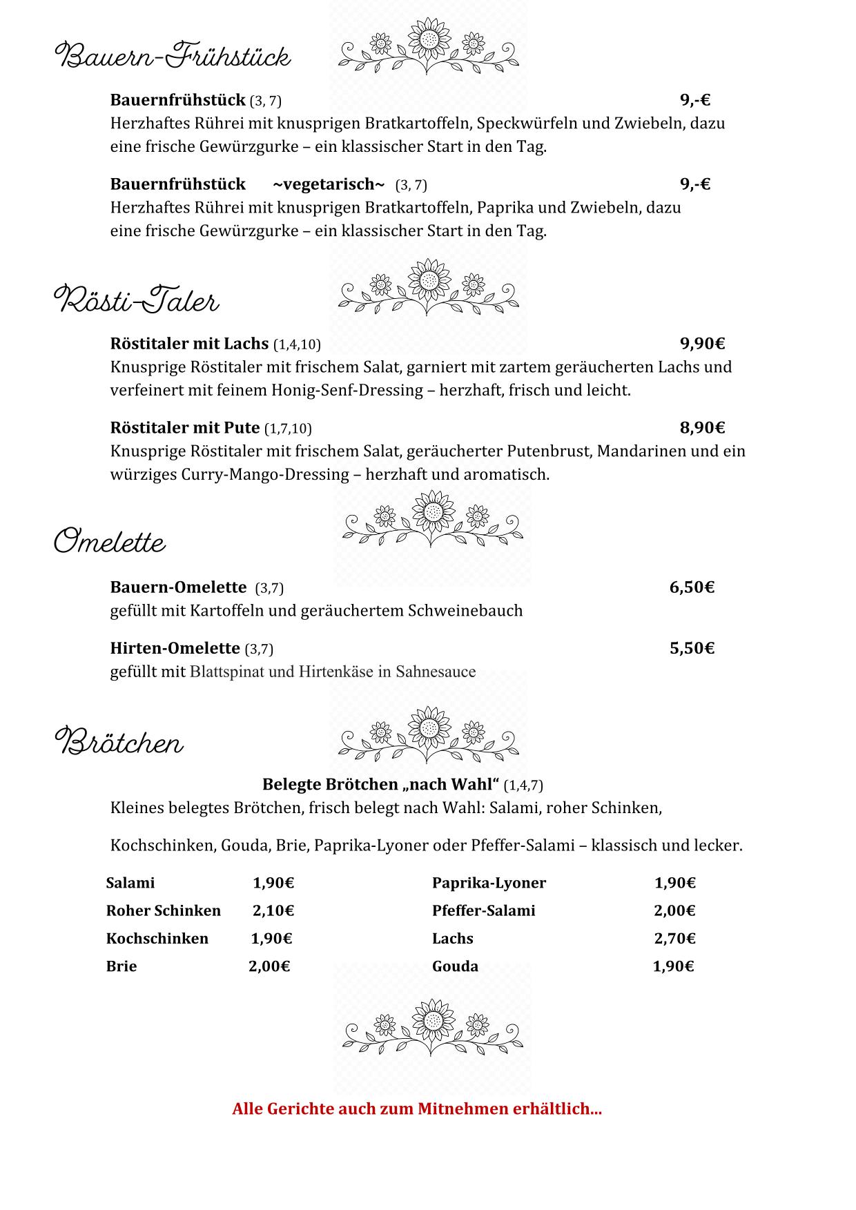 Unsere kleinen Gerichte bereiten wir frisch und mit viel Liebe zu – perfekt für eine kurze Auszeit bei uns oder zum Mitnehmen.